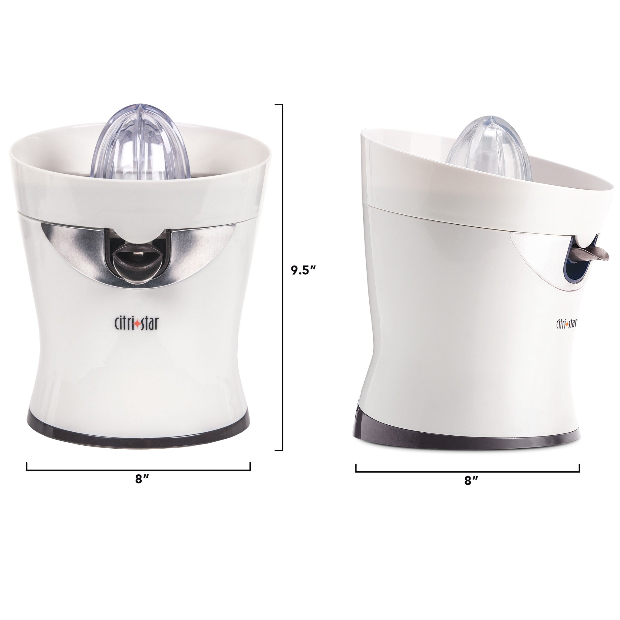 The Citristar provides for all your citrus juice needs. It has a specially designed, unique high-clearance stainless steel spout to prevent clogging and ensure continuous operation. The quiet yet powerful motor makes quick work of all your citrus fruits, including oranges, grapefruits, lemons, and limes.