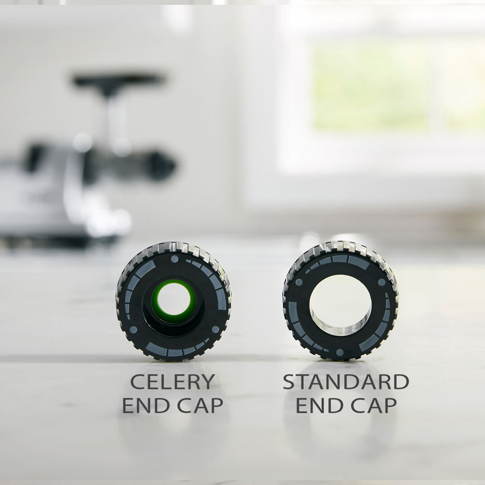 Includes two adjustable end caps. Adjustable celery end cap attachment and standard adjustable end cap for juicing other produce.