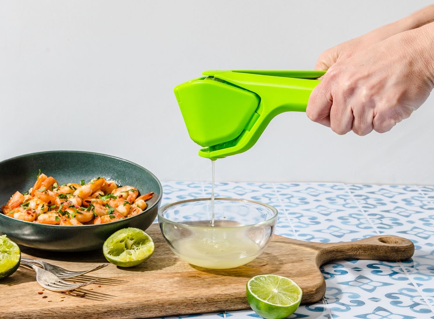 the Fluicer’s design folds the fruit as it squeezes, maximising juice extraction with minimal effort. It prevents seeds getting in your juice thanks to the built-in pip catcher, making it perfect for juicing limes directly into drinks and recipes. Plus, its compact folding design ensures it takes up minimal space in your kitchen drawer or cupboard.