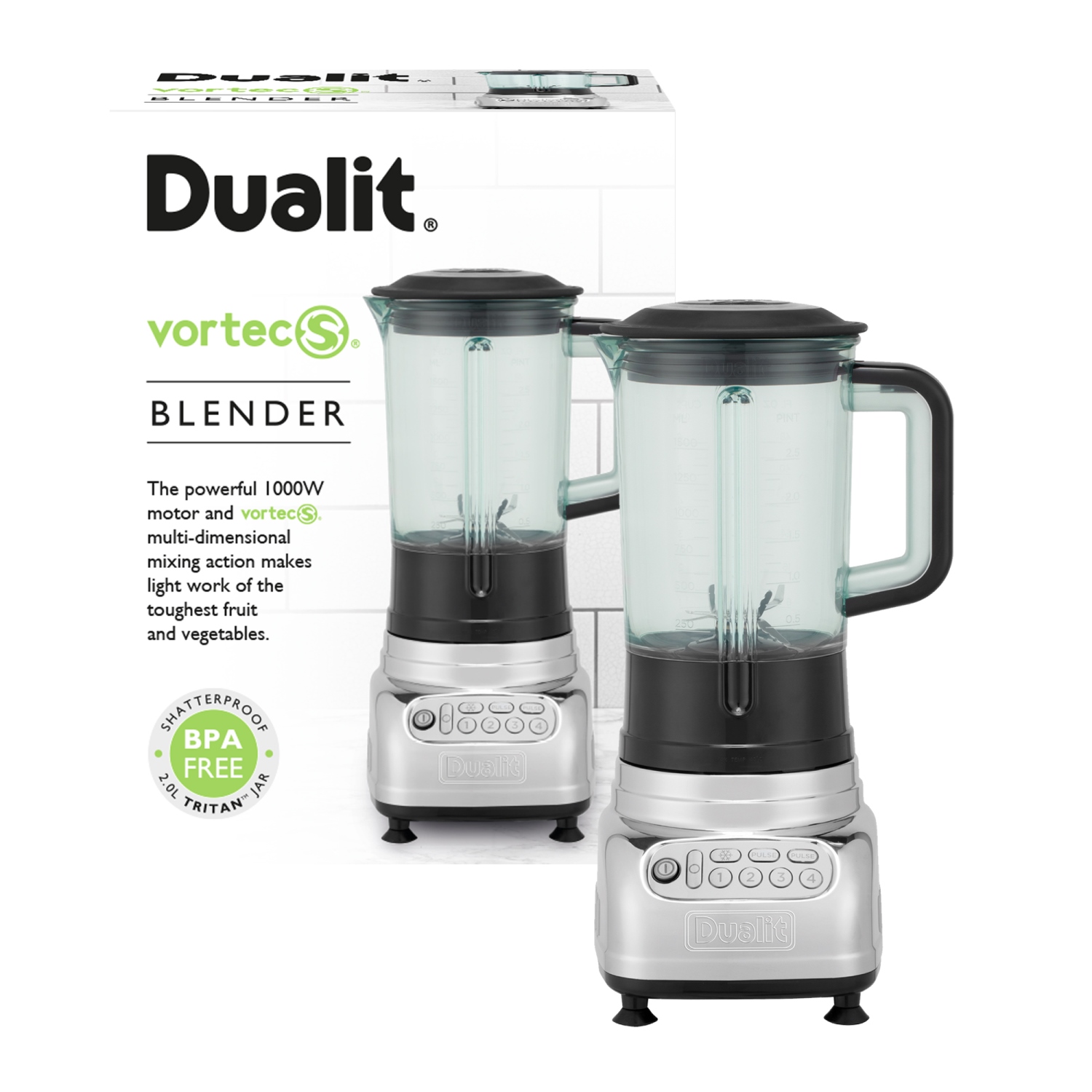 The all new 4th generation Dualit VortecS® Blender & Smoothie Maker comes with a massive 1000W of blending power and brings VortecS® technology to the party to give you even smoother results for your favourite soups, smoothies and other recipes.