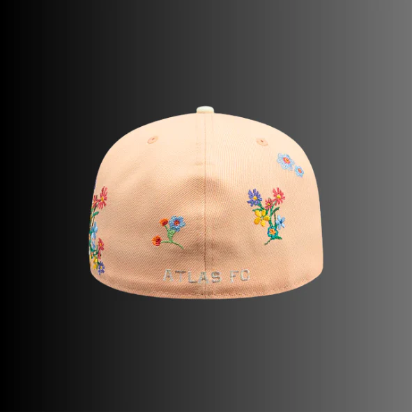 Esta gorra plana New Era 59FIFTY de Atlas FC de la colección Futbol Mexicano Bloom presenta un diseño floral con el logotipo del Atlas bordado en los paneles frontales, un parche representativo del equipo del lado derecho, el nombre del equipo al reverso y el flag de New Era bordado del lado izquierdo.