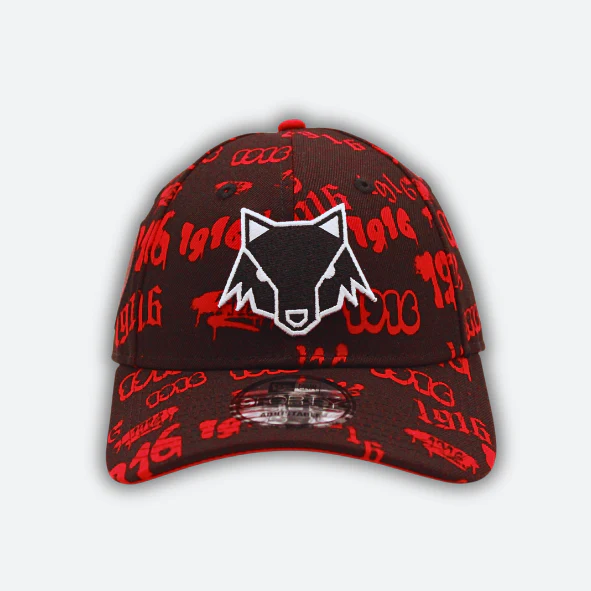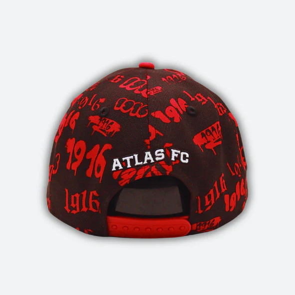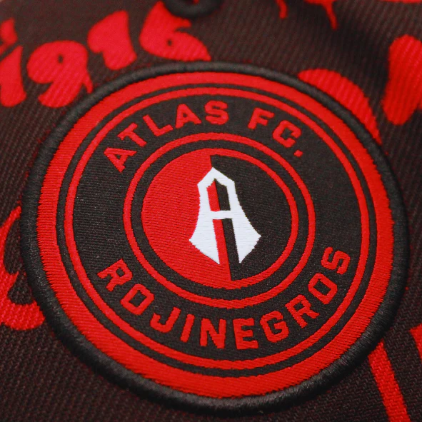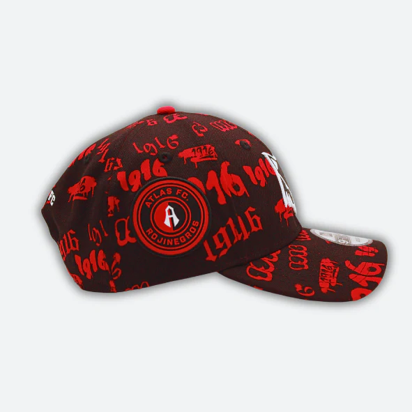 Gorra New Era 9FORTY de ATLAS FC de la colección Stencil Collection presenta el escudo zorro bordado en los paneles frontales así como la fecha 1916 en toda la gorra con diferentes estilos de fuente, la bandera de New Era bordada en el lado izquierdo y un parche especial de los Rojinegros en el lado derecho.