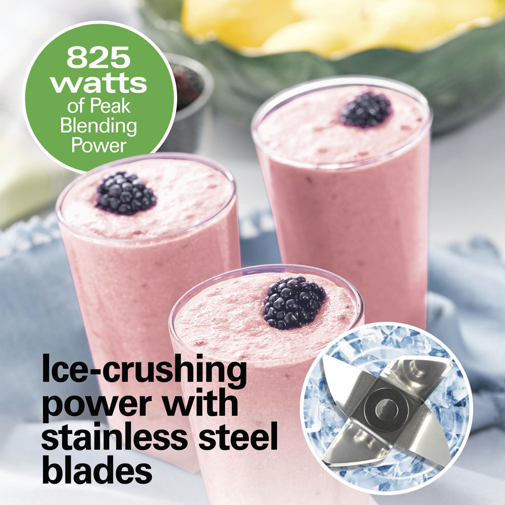Blend big batches with the 52 oz. glass jar or attach the 20 oz. BPA-free travel jar to make individual servings of smoothies, shakes and more to take on the go — it’s that easy.