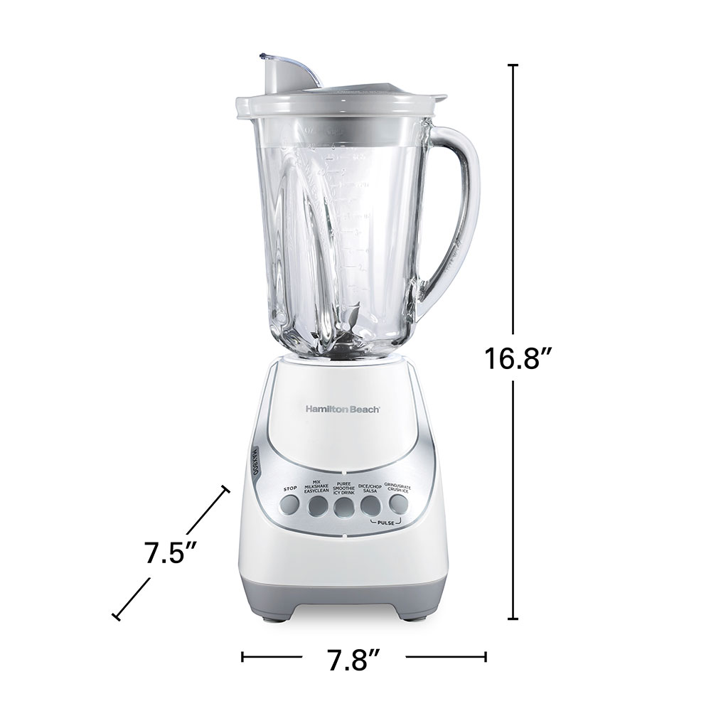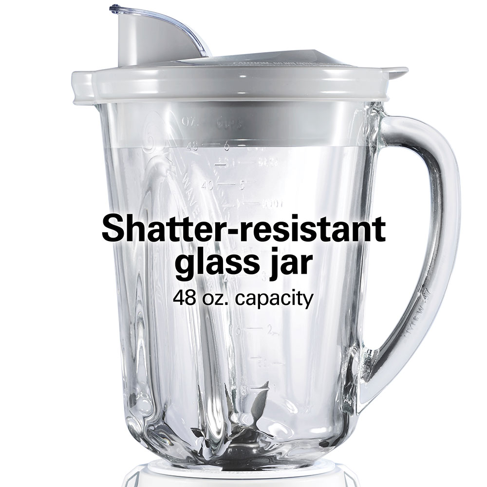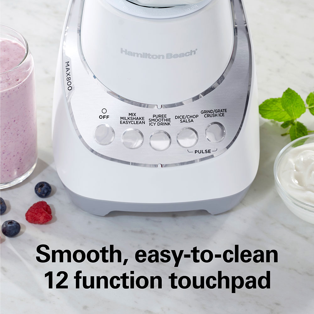 The smooth, easy-to-clean 12 function touchpad provides maximum blending versatility, and there’s no guesswork since the base clearly indicates which button to use for every job. Built with a patented quieter blending design, the Hamilton Beach Wave~Action Quiet Blender minimizes noise as you blend. Serving multiple people is easy because the shatter-resistant glass jar holds 48 ounces and the mess-free pour spout messy eliminates drips. Built for long-lasting performance and backed by Hamilton Beach with a 3 year limited warranty.