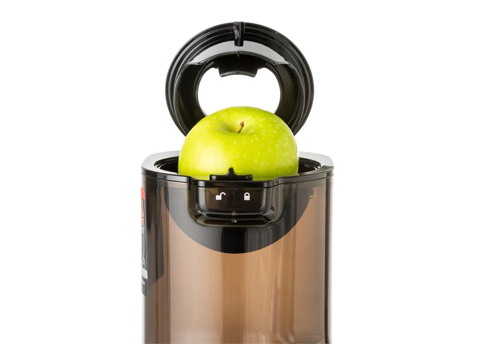 The Kuvings B1700 Whole Slow Juicer has an extra wide feed chute with a 76mm opening meaning reduced ingredient prep.