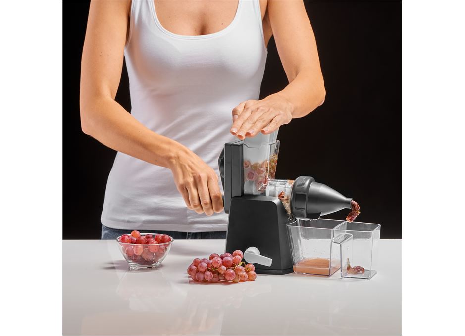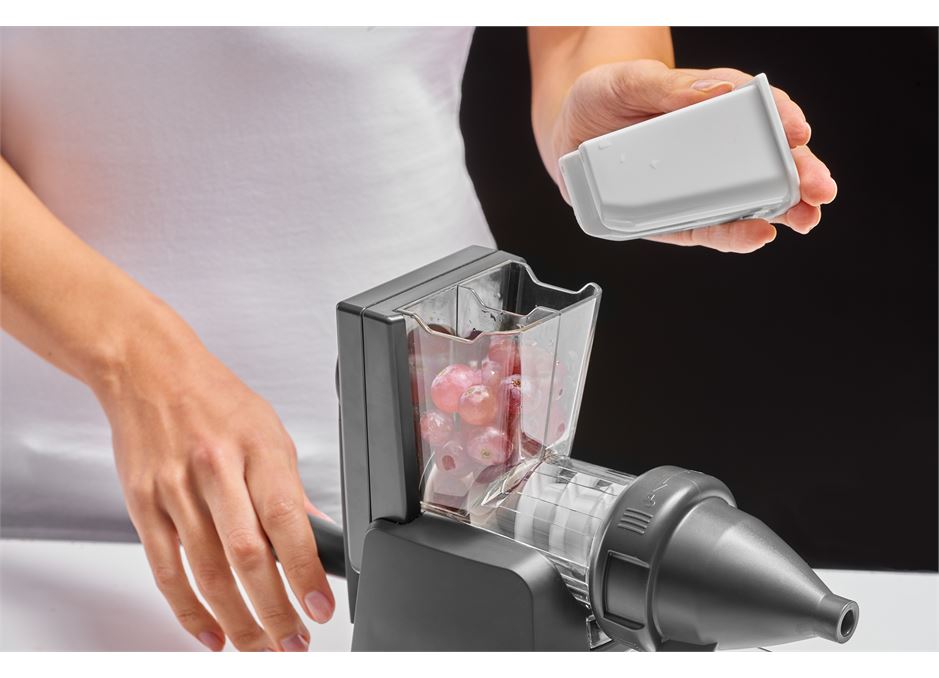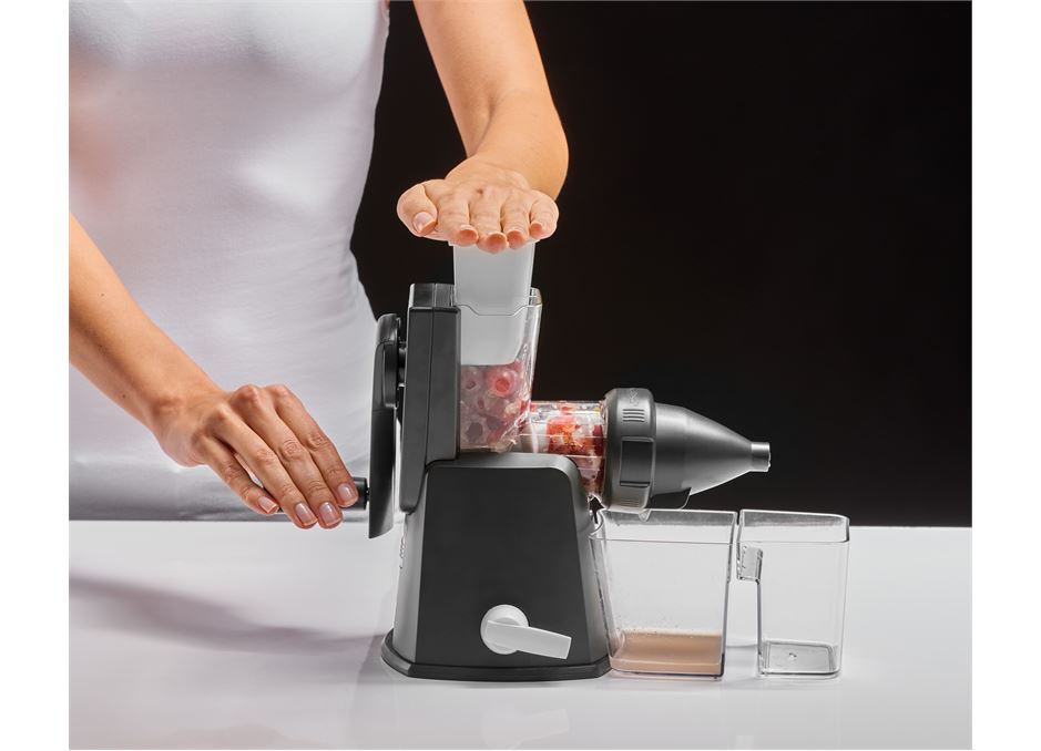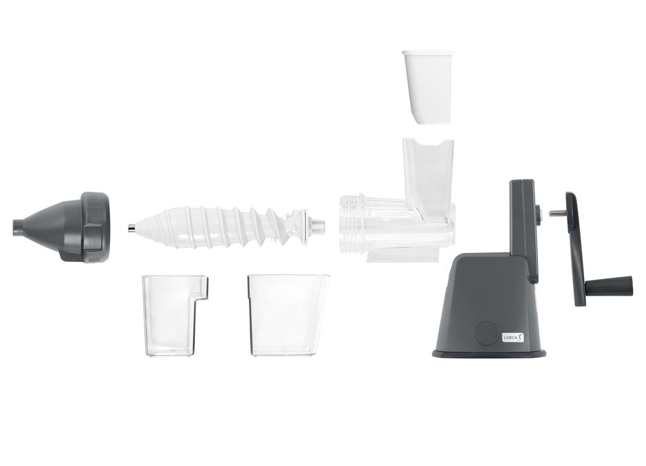 It’s also easier to crank than most manual juicers because it has a 2:1 gear ratio between the handle and the auger. The base and soul concept from German brand Lurch means that the base of the juicer can be used with the other ‘soul’, or top parts in the range which include a drum grater attachment and a mincer grinder, making this a very versatile little kitchen machine.