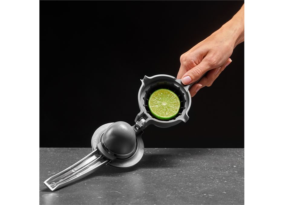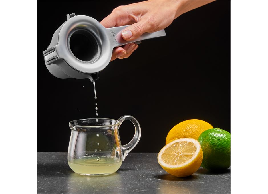 squeeze the citrus fruit directly into its own pouring chamber with spout. A superb, practical little citrus squeezer – simply press and pour!