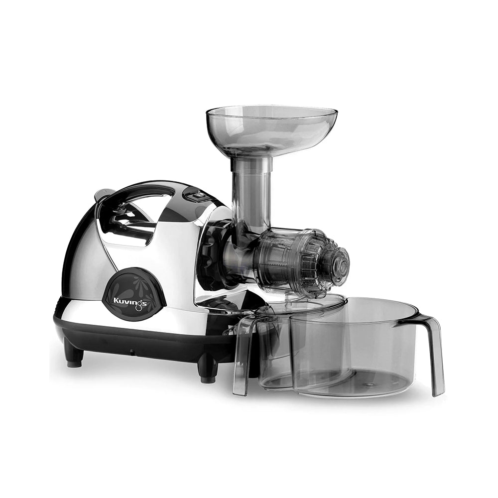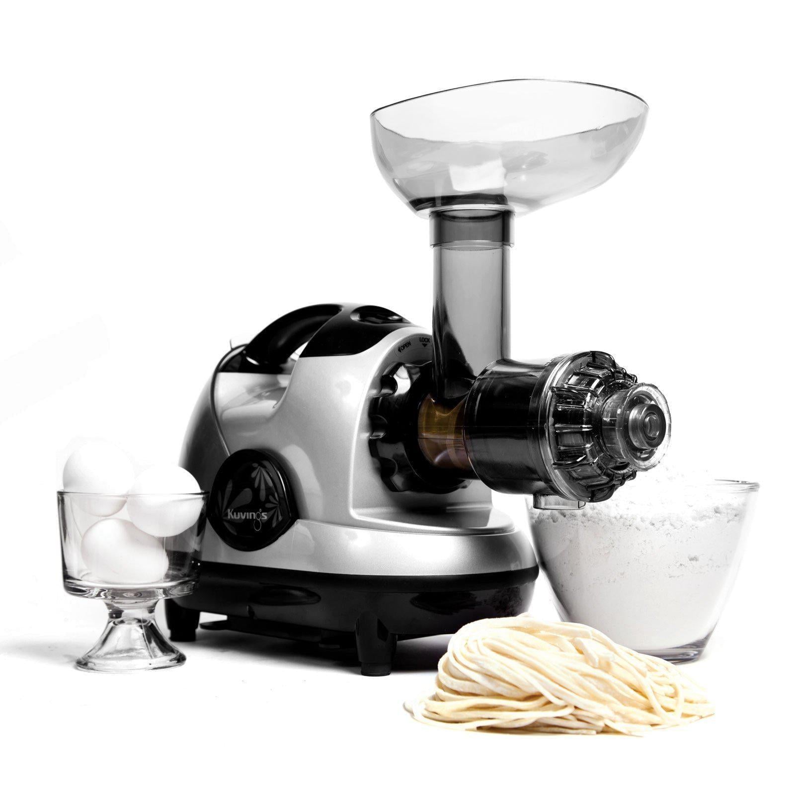 This horizontal masticating juicer features a multipurpose design that not only creates healthy, homemade juices, but can also extrude pasta, grind coffee beans and spices, mince herbs and garlic, and extract nut and soy milk. Includes 7 different nozzles for food processing versatility, and a removable hopper for inserting smaller ingredients.