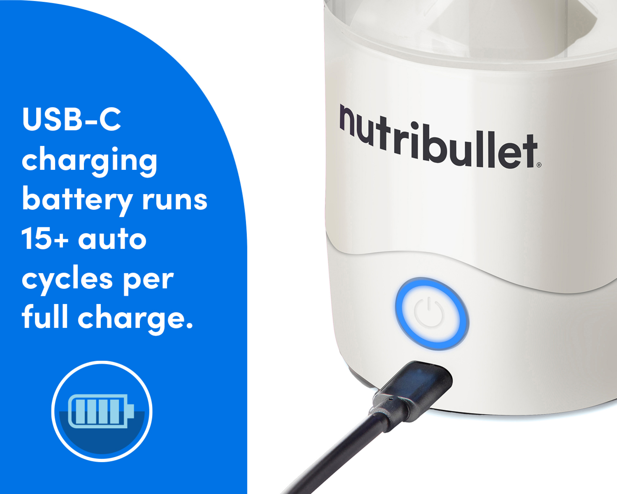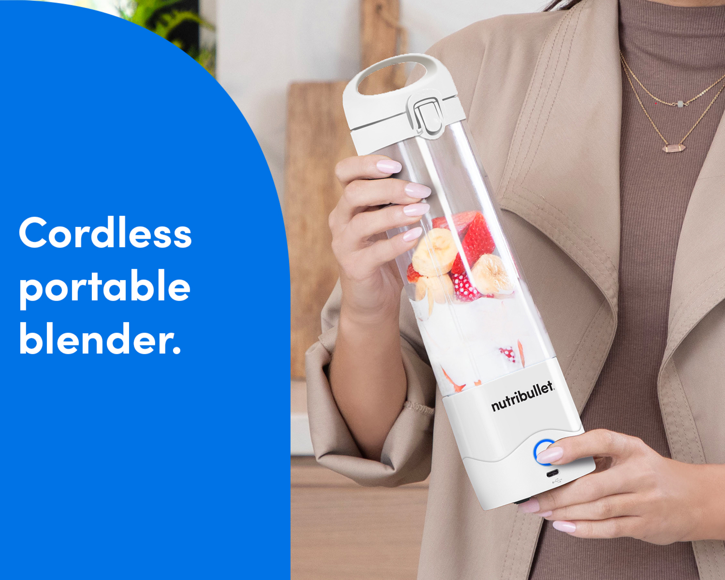 Lightweight, compact, and ready for adventure, the nutribullet Portable Blender lets you enjoy all your favorite smoothies, shakes, and blended drinks on the go. Its rechargeable USB-C battery powers 15+ blend cycles per full charge, while its handled lid makes it a breeze to carry on all your outings, whether you’re heading to the gym, the beach, the office, or anywhere else the road takes you.