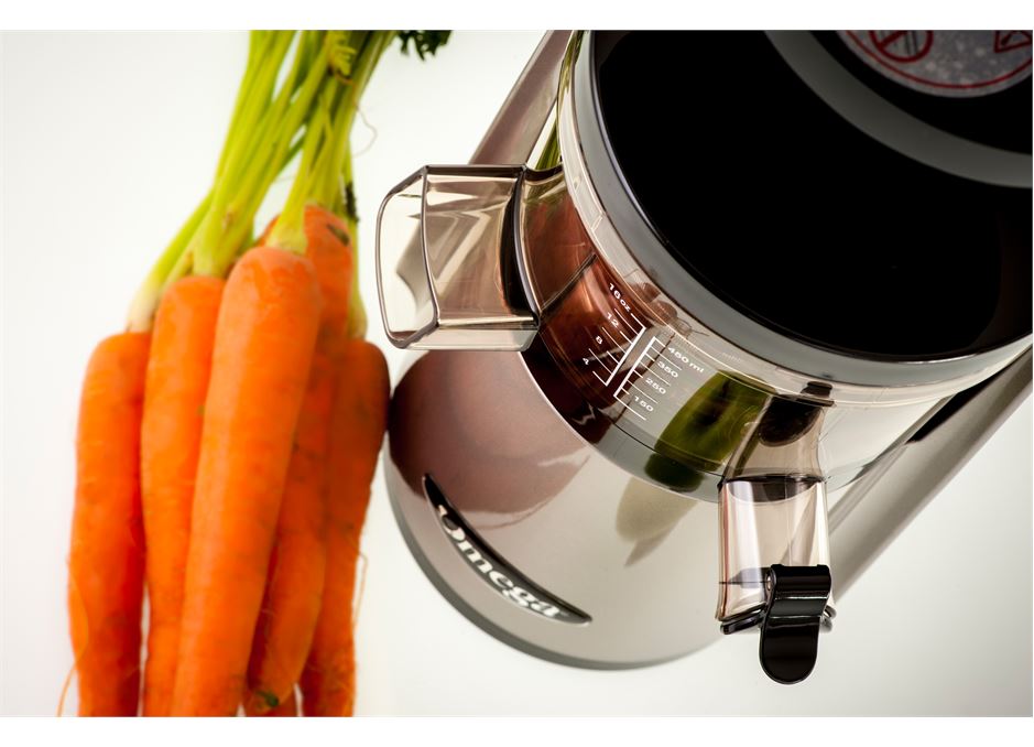 The Omega MMV702 Mega Mouth Low Speed Juicer adds the convenience of an extra large feed chute to Omegas unbeatable slow juicer performance.