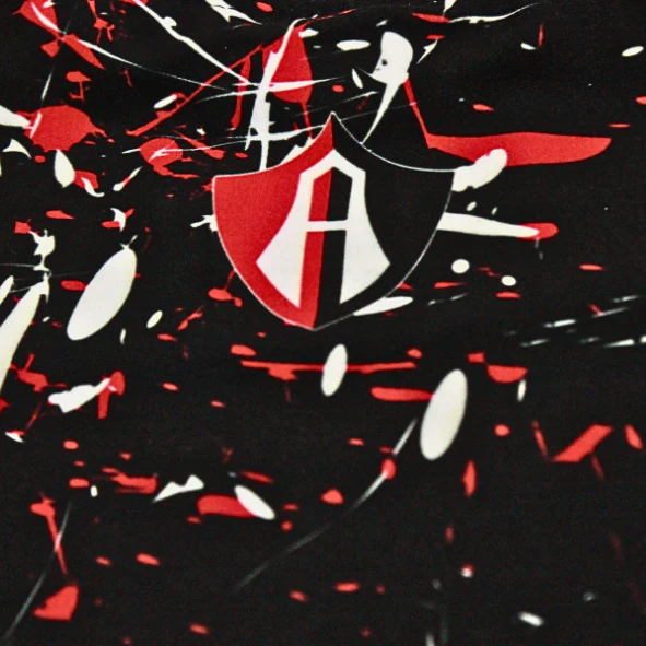 Escudo “A” Atlas FC a la derecha contra esquina y al reverso de la playera en color blanco.