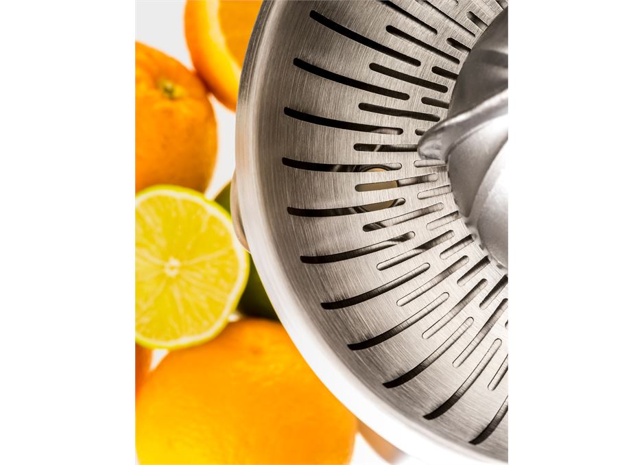The GEFU LEMON PRO citrus squeezer can accommodate even small juicing oranges up to 8.5cm in size, as well as all lemons and limes. Sitting at the pre