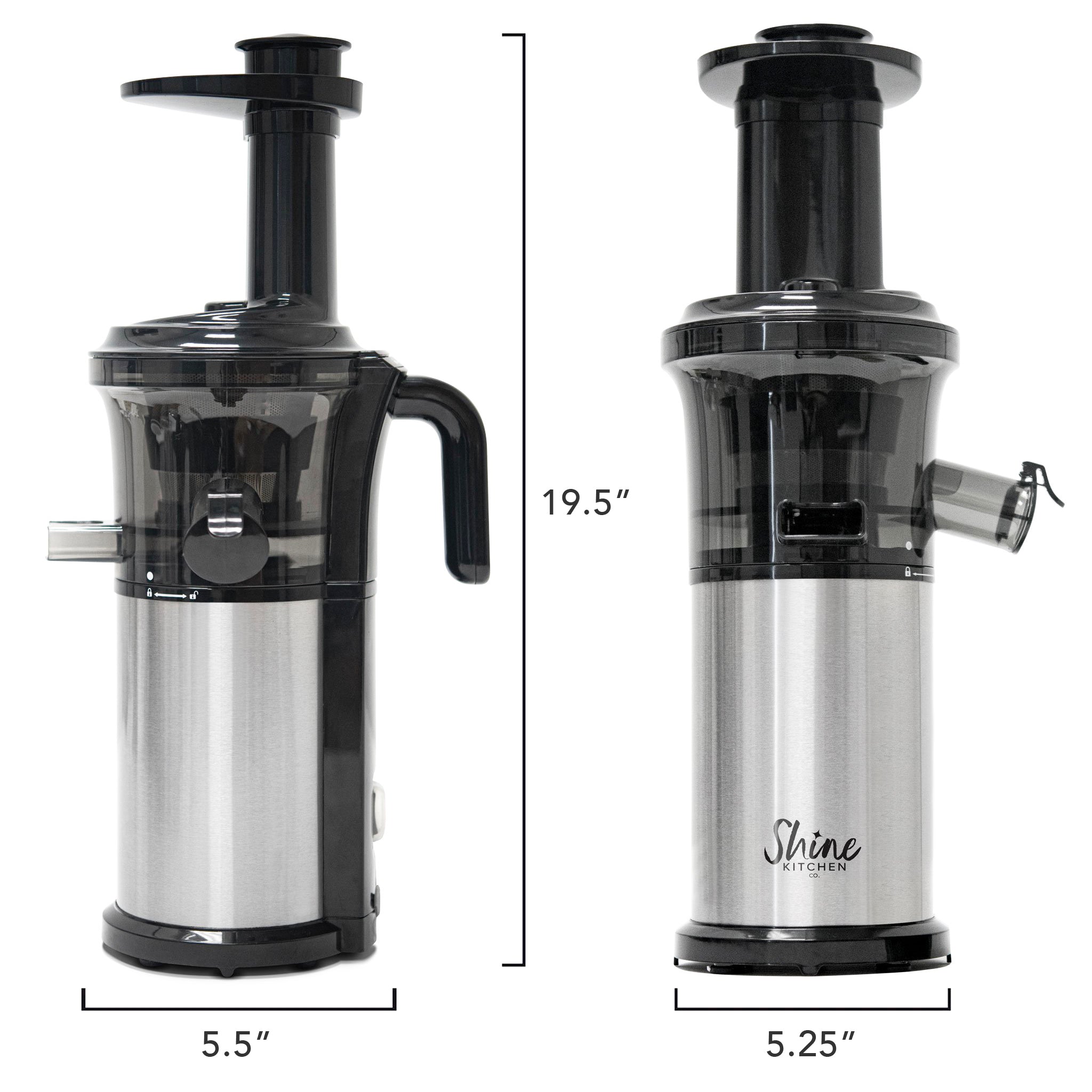 The Shine Kitchen Co.® Cold Press Vertical Slow Juicer is compact, accessible, easy to use, and fits easily into any lifestyle. This innovative juicer breaks down the barriers to health, designed to help you Shine bright!
