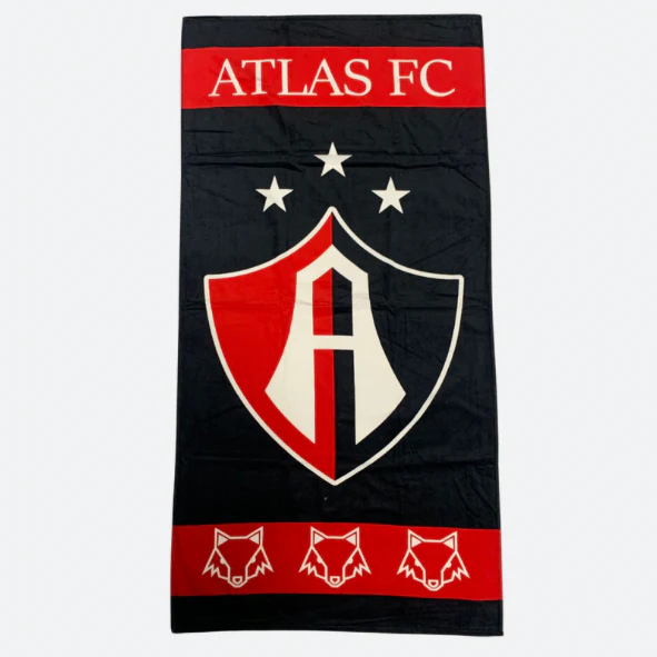 Leyenda “Atlas FC” en la parte Superior de la Toalla