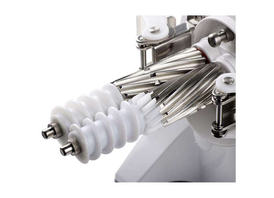 offers quicker assembly, redesigned three stage pressing gears, a safety interlock switch and a whole new look. Greenstar Juicers have always been big and solid and the GSE-5000 Elite is no exception with even bigger ‘Jumbo Gears’ that have been designed to offer a three stage juicing process. The acetate screw section of the jumbo gears has a new profile to offer a mixing stage just before the pressing stage. The manufacturer claims that this is in line with Max Gerson’s juicing theory, where pulp and juice are mixed together before pressing.