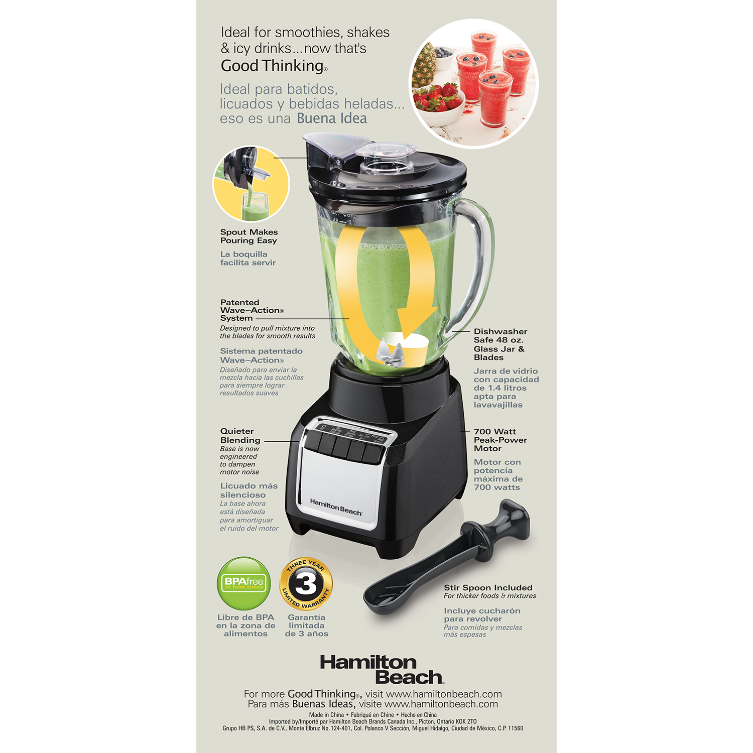 Hamilton Beach Stay or Go® Blender — 32oz Tritan Jar, 4 Containers