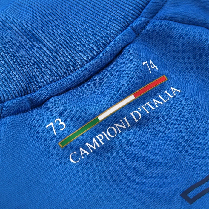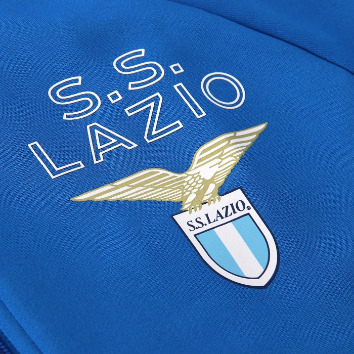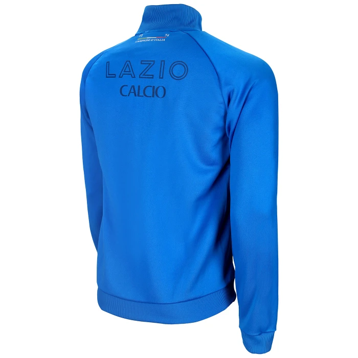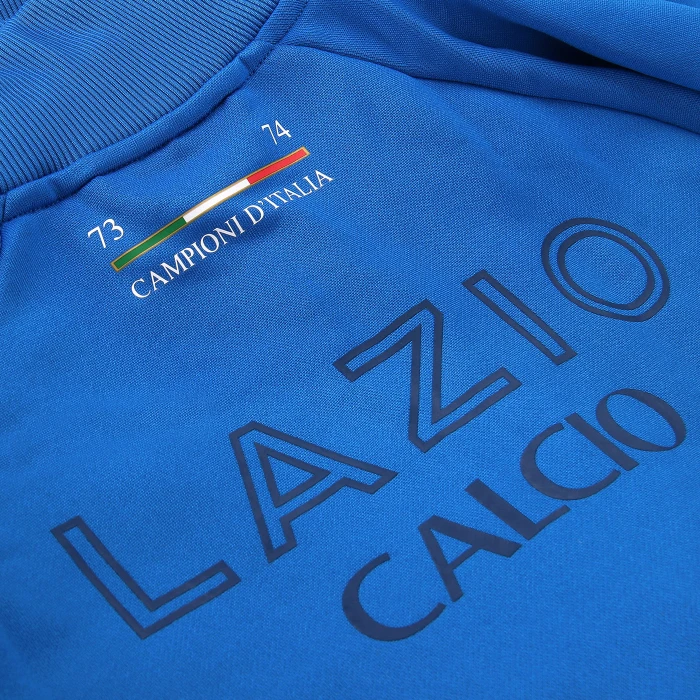 La giacca fa parte dell’edizione speciale del kit di S.S. Lazio 2023/2024, ispirato alla divisa indossata dai Campioni d’Italia del 1973/1974 per celebrare il 50° anniversario da quella vittoria leggendaria. La giacca è in blu reale e riporta i loghi ufficiali del club stampati sul davanti e sulla schiena, tra cui la grafica “Campioni d’Italia 73-74” sul retro del collo. Il design è pensato per garantire una vestibilità ottimale, infatti questo capo presenta due comode tasche laterali con chiusura a zip, perfette per riporre in sicurezza gli oggetti essenziali.