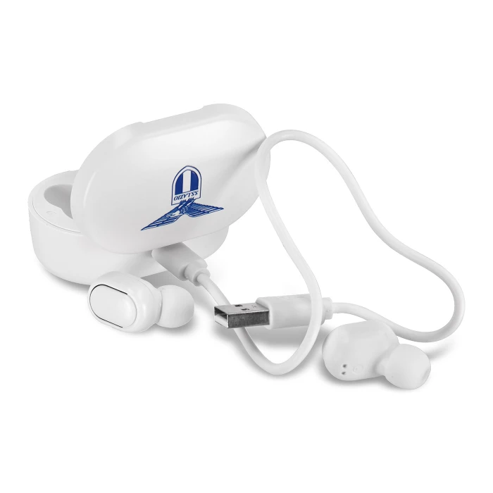 Auricolari stereo wireless True Wireless Stereo 5.0 in ABS riciclato con batteria da 40 mAh integrata. Dimensioni cm 6,1x4x2,8