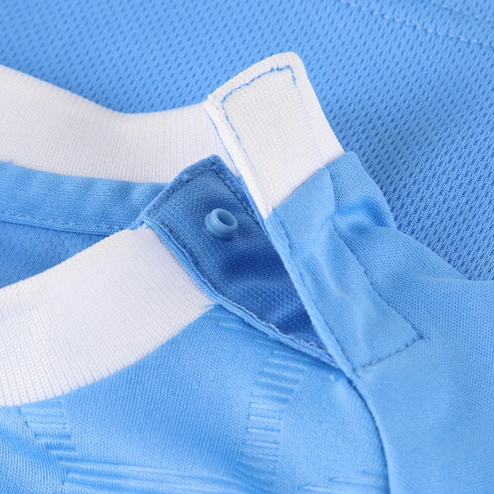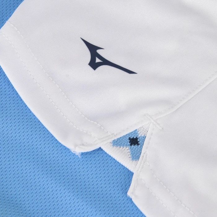 Maglia Pannello frontale in rilievo, retro in mesh e maniche raglan lisce. Colletto girocollo e polsini in costina tinta unita. Aperture laterali al colletto con due bottoncini automatici per lato, per una vestibilità facile e sicura. Nastro interno collo semplice. Crest principale del club e logo Mizuno applicati a caldo su petto e maniche. Scritta 9 GENNAIO 1900 applicata a caldo sul retro del collo.
