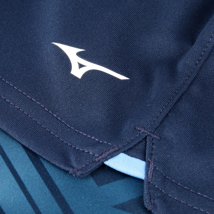 Pantaloncini – design semplice con vita aderente senza coulisse, inserti a costina jacquard a rombi sulle aperture laterali. Stemma del club e logo Mizuno applicati a caldo sull’orlo delle gambe.