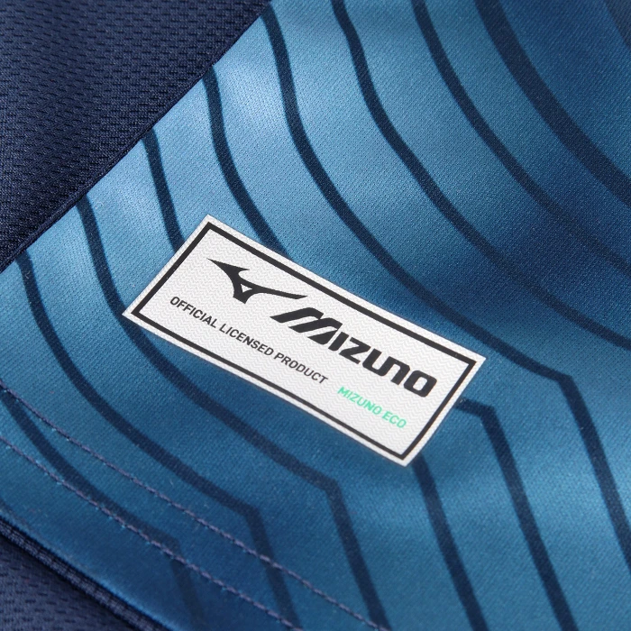 Pantaloncini – design semplice con vita aderente senza coulisse, inserti a costina jacquard a rombi sulle aperture laterali. Stemma del club e logo Mizuno applicati a caldo sull’orlo delle gambe.