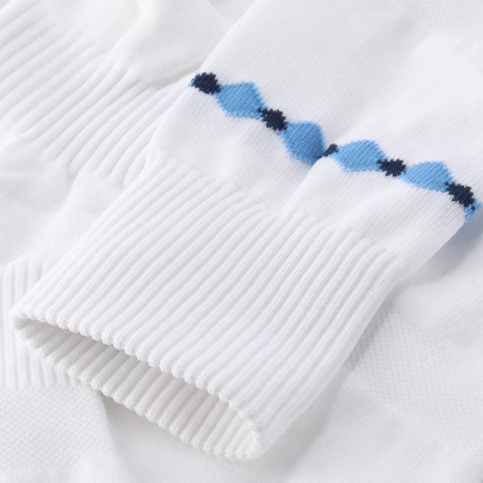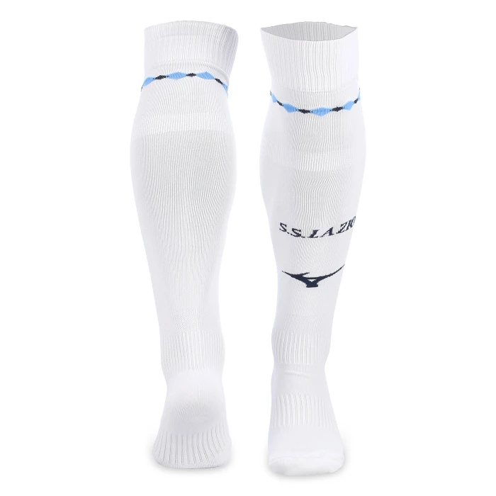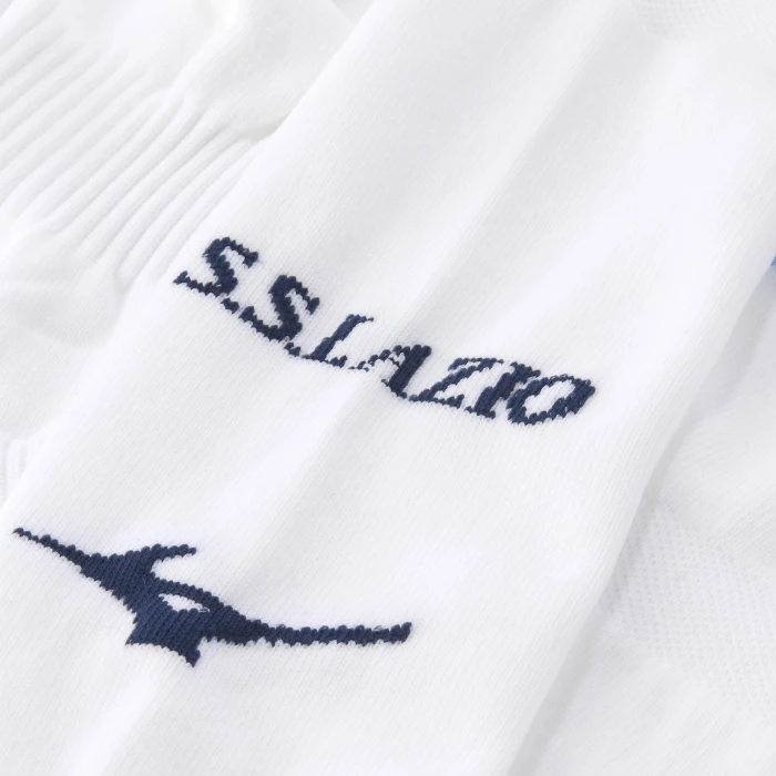 Calzettone che completa la divisa Home con un ampio motivo a diamante lavorato a maglia sulla parte superiore della gamba. I loghi S.S. Lazio e Mizuno sono anch’essi integrati nella trama sulla parte frontale. Il design è pensato per offrire il massimo comfort durante il movimento, grazie all’imbottitura in spugna su punta e tallone, e al sostegno elastico su polpaccio, caviglia e arco plantare.