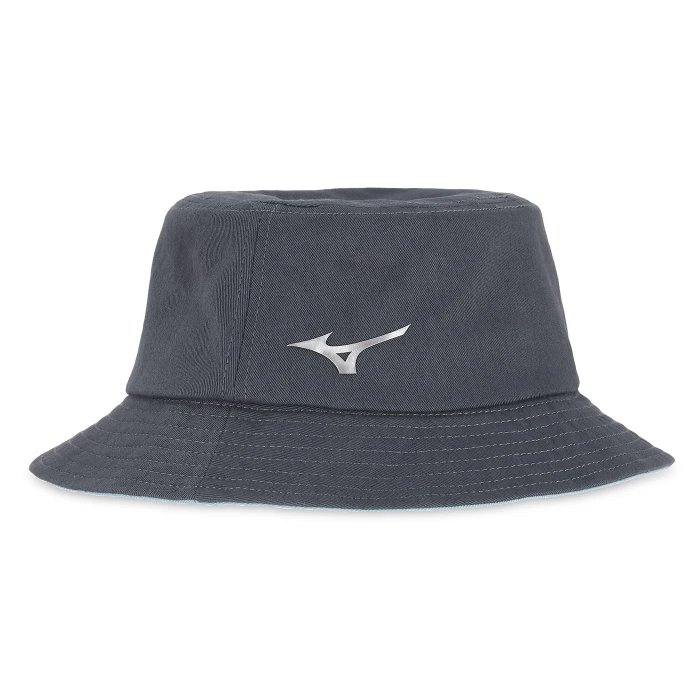 Cappellino stile pescatore con colore a contrasto sotto la tesa. Badge tessuto su base in rilievo termosaldato (3D weld) posizionato frontalmente e logo Mizuno stampato sul retro laterale.