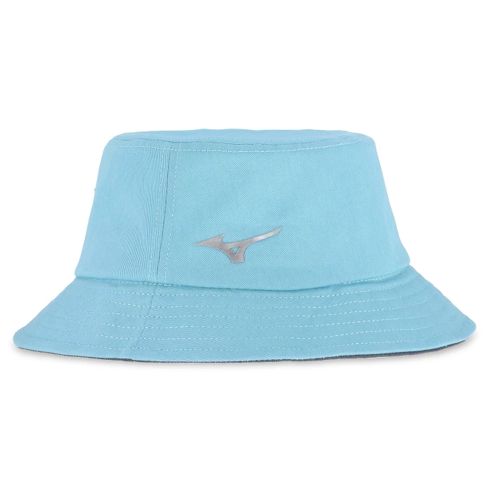 Cappellino stile pescatore con colore a contrasto sotto la tesa. Badge tessuto su base in rilievo termosaldato (3D weld) posizionato frontalmente e logo Mizuno stampato sul retro laterale.