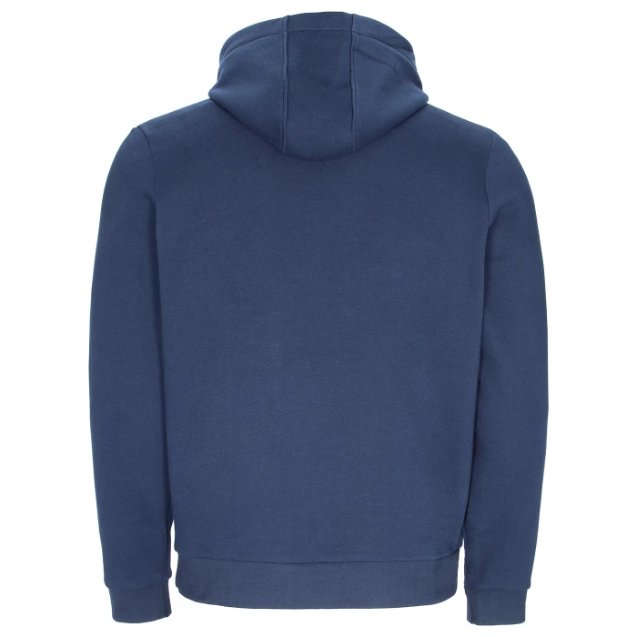 Felpa con cappuccio con maniche lunghe a giro. Cappuccio in 3 sezioni, completamente foderato, con coulisse piatta passante attraverso occhielli in metallo sul davanti. Nastro interno collo posteriore in tinta unita. Spalle avanzate con cuciture a vista. Tasca a marsupio sul fondo anteriore con cuciture decorative.