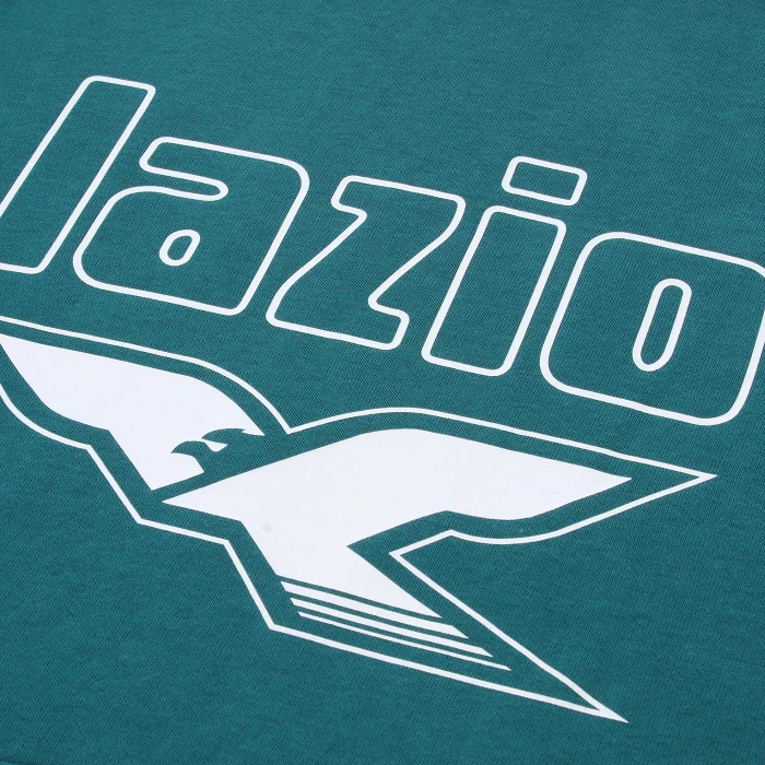 Grafica in stampa gommata Aquila rétro Lazio al centro del petto e logo Mizuno ricamato sullorlo inferiore destro della tasca a marsupio. Polsini e fondo in costina.