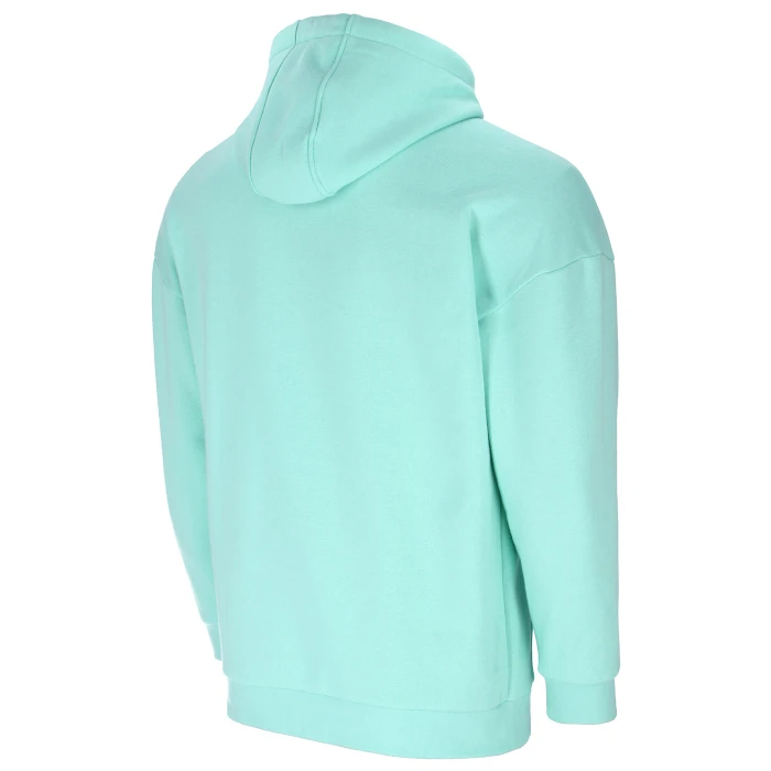 Felpa con cappuccio con maniche lunghe a giro. Cappuccio in 3 sezioni completamente foderato, con coulisse piatta passante attraverso occhielli in metallo sul davanti. Nastro interno collo posteriore in tinta unita. Spalle avanzate con cuciture a vista. Tasca a marsupio sul fondo anteriore con cuciture decorative. Grafica sfumata “Lazio” stampata in gomma al centro del petto e logo Mizuno ricamato sullorlo inferiore destro della tasca a marsupio. Polsini e fondo del capo a costine.
