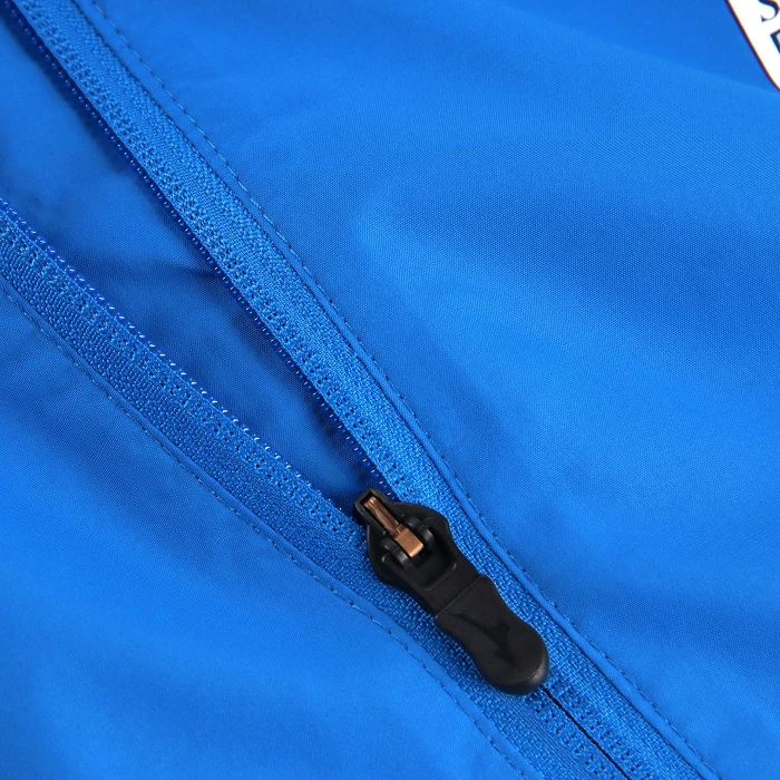 La linea da allenamento di Mizuno è progettata per sostenere le alte prestazioni dei giocatori professionisti di S.S. Lazio. Questa giacca impermeabile si adatta a tutte le condizioni atmosferiche. Il cappuccio regolabile con cordino, l’esterno idrorepellente e i polsini elasticizzati elimineranno ogni ostacolo tra te e il pallone quando il tempo diventa più ostile. Sii pronto ad affrontale il tuo prossimo allenamento sfoggiando il logo della tua squadra del cuore. 100% Poliestere impermeabile.