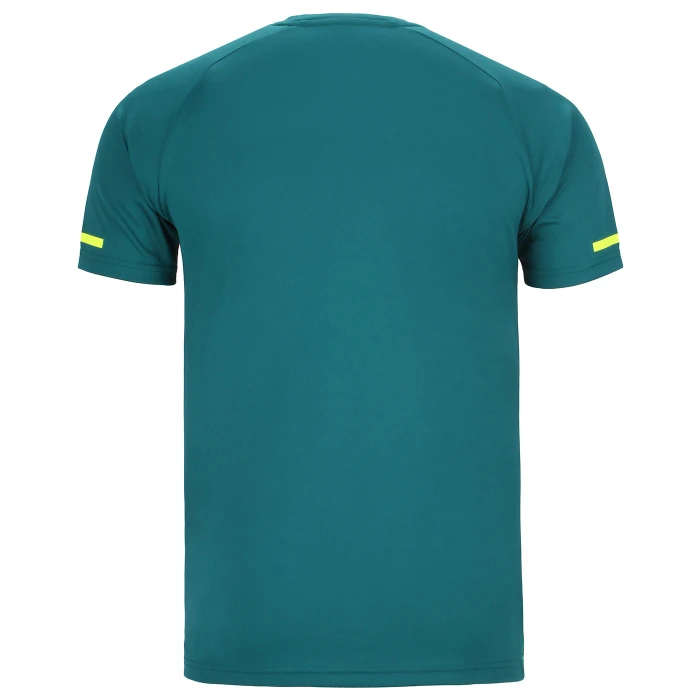 Maglia da allenamento manica corta con grafica sul davanti, retro, maniche e collo girocollo in tinta unita. Nastro interno collo posteriore in tinta unita.