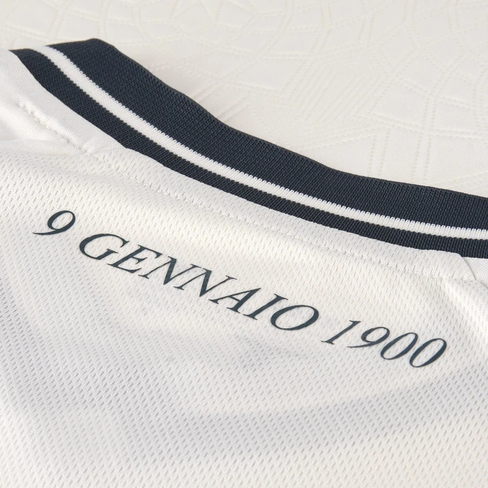 Maglia Away caratterizzata da un pannello frontale in rilievo, retro in mesh liscio e maniche raglan lisce. Colletto a V in costina con profilo a contrasto, così come i polsini. Nastro interno collo semplice. Crest del club in silicone 3D Tatami e loghi Mizuno applicati a caldo, con ulteriori loghi Mizuno sulle maniche. La scritta 9 GENNAIO 1900, applicata a caldo, è posizionata sul retro del collo. Logo Official Licensed Product applicato a caldo sullorlo frontale, lato destro per chi la indossa.