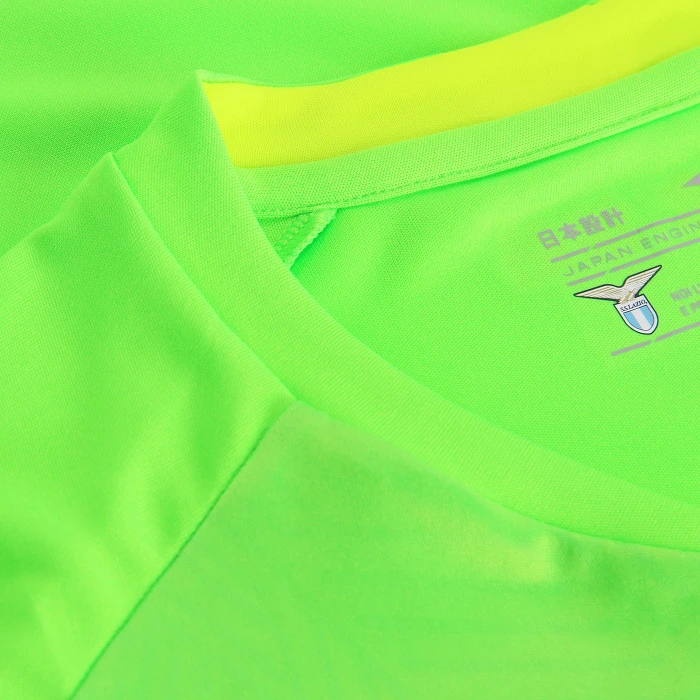 La maglia Home da portiere della stagione 2024-25 di S.S. Lazio firmata Mizuno trasmette dinamismo e innovazione grazie al suo design unico. Sul davanti della Maglia da bambino è presente un motivo geometrico che si sfuma in alto per dare risalto ai loghi del club e lo sponsor tecnico. Il collo a V ha stampato all’interno la scritta “noi l’amiamo…e per lei combattiamo” mentre all’esterno, sul retro della maglia, compare il motto “Una fede, Una Passione”, scritto in caratteri giapponesi per sottolineare il legame tra lo sponsor tecnico, il club e i tifosi. 100% Poliestere.