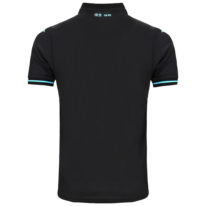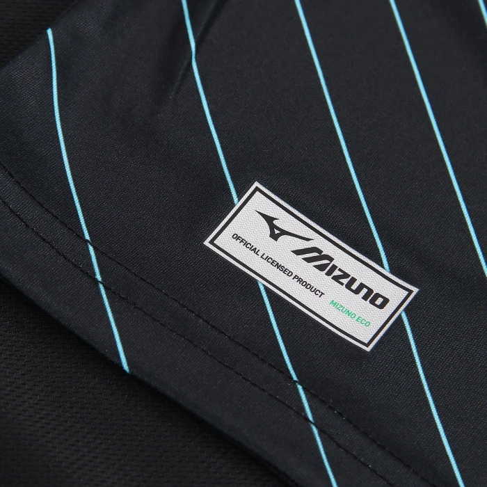 La maglia Third 24/25 di S.S. Lazio firmata Mizuno rappresenta il cuore pulsante del club. Le sottili linee azzurro elettrico sembrano irradiarsi dal logo della Lazio verso l’esterno, simboleggiando il forte battito del cuore dei tifosi e giocatori. L’azzurro vivido delle linee, del bordo a coste sulle maniche e dei loghi ufficiali, sono messi in risalto dal nero a tinta unita che fa da sfondo. La scritta sul retro in giapponese sta per “Una fede una passione”, uno dei motti della società, affermando il profondo legame fra lo sponsor tecnico e il mondo della Lazio. 100% Poliestere