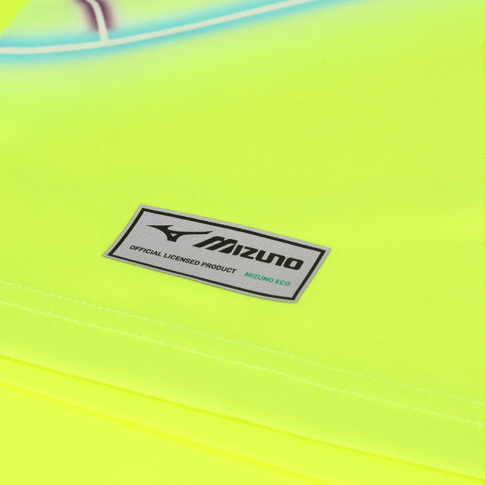– Crest del club in silicone 3D con loghi Mizuno e scritte applicati a caldo.