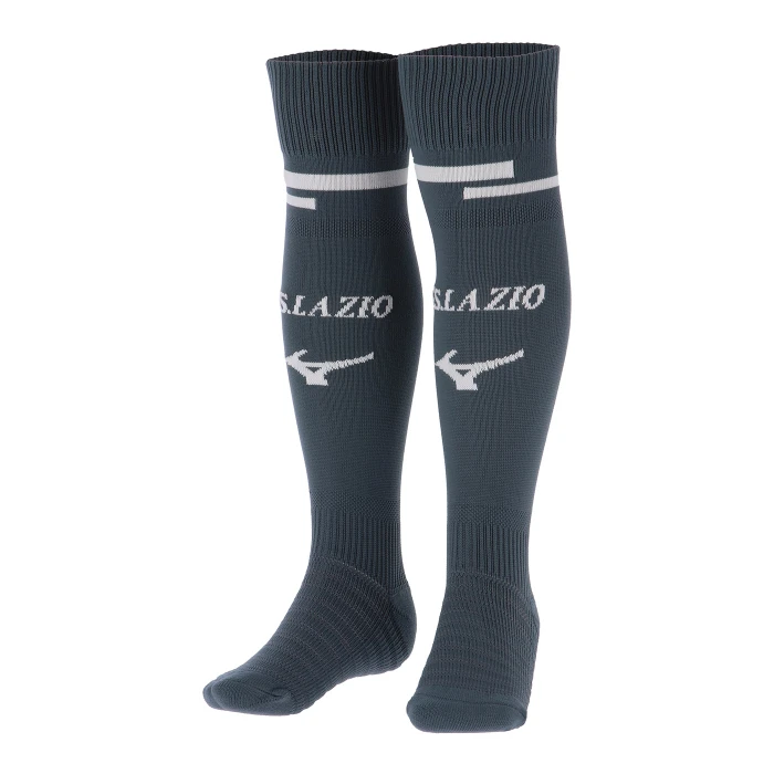 Calzini Motivo jacquard a blocchi a contrasto sulla parte superiore delle gambe. Loghi S.S. LAZIO e Mizuno integrati a maglia su entrambe le gambe. Supporto elastico su polpaccio, caviglia e arco plantare.