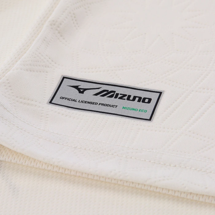 Maglia Pannello frontale in rilievo, retro in mesh e maniche raglan lisce. Colletto a V in costina con profilo a contrasto, così come i polsini. Nastro interno collo semplice. Crest principale del club e logo Mizuno applicati a caldo su petto e maniche. Scritta 9 GENNAIO 1900 applicata a caldo sul retro del collo.