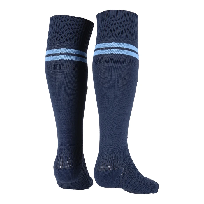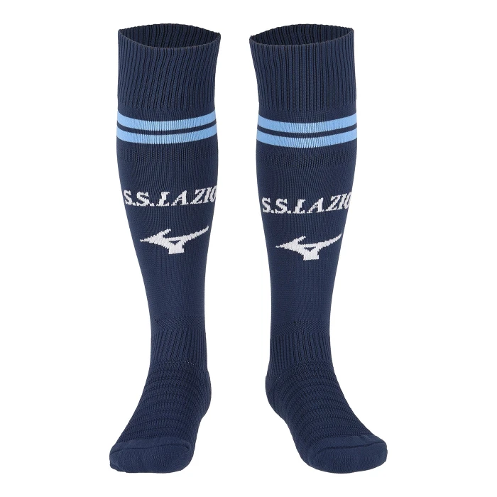 Calzettoni – doppia striscia a contrasto lavorata a jacquard sulla parte superiore della gamba, loghi S.S. Lazio e Mizuno intrecciati su entrambe le gambe. Supporto elastico su polpaccio superiore, caviglia e arco plantare.