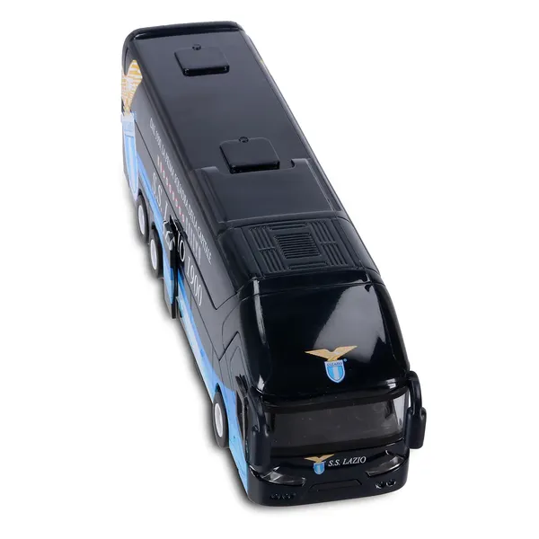 Modellino del bus ufficiale Lazio in scala con porte laterali che si aprono e retrocarica. Dimensioni: 20 x 4,5 x 5,5 cm.