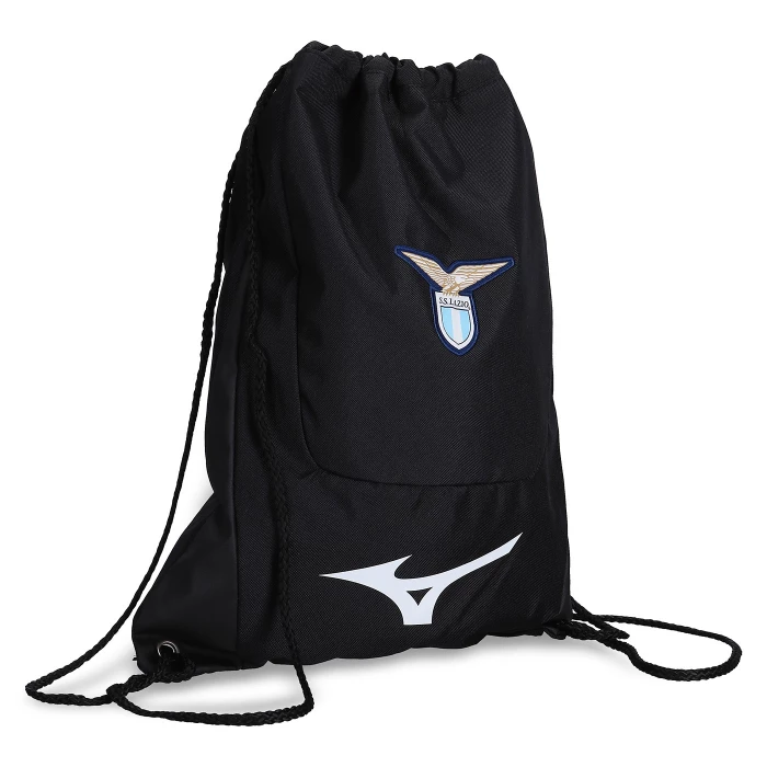 100% poliestere. Pannelli laterali rivestiti in PU. Chiusura regolabile con cordino nero e occhielli. Stampa Lazio frontale. Logo Mizuno sul pannello