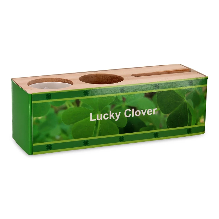 Supporto da scrivania multifunzionale diviso in tre sezioni: portacellulare, portapenne e vaso per piantine. All’interno della confezione si trova in dotazione il vasetto in carta con terriccio e semi di quadrifoglio da coltivare. Logo Lazio inciso su legno. Dimensioni in cm 23×7,3×7,5
