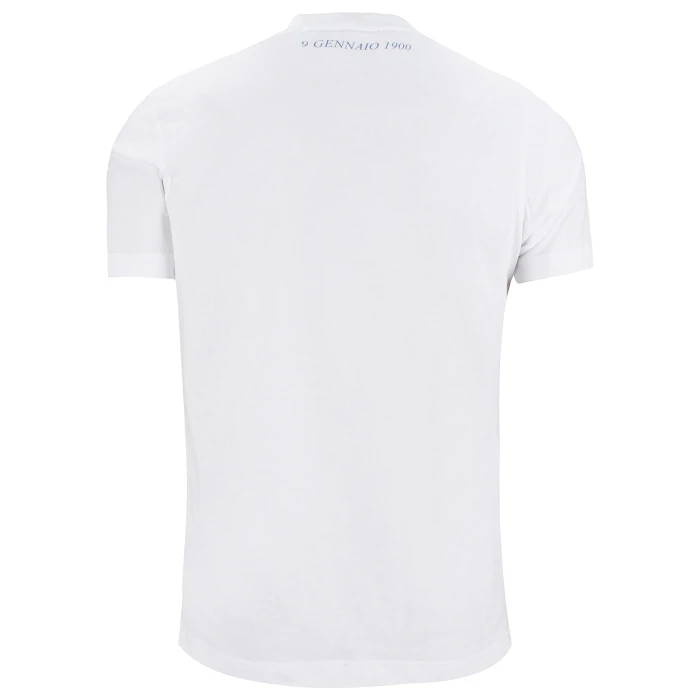 T-shirt grafica della S.S. Lazio per celebrare il 125 anniversario del club, ispirandosi alle tendenze degli anni 70 e 80 e riportando alla luce lo stemma del club di quellepoca. Il design presenta unampia serigrafia dello stemma del club e del testo sul davanti, una serigrafia Mizuno sullorlo inferiore e la scritta 9 GENNAIO 1900 al centro del collo. Composizione : 60% cotone, 40% poliestere.