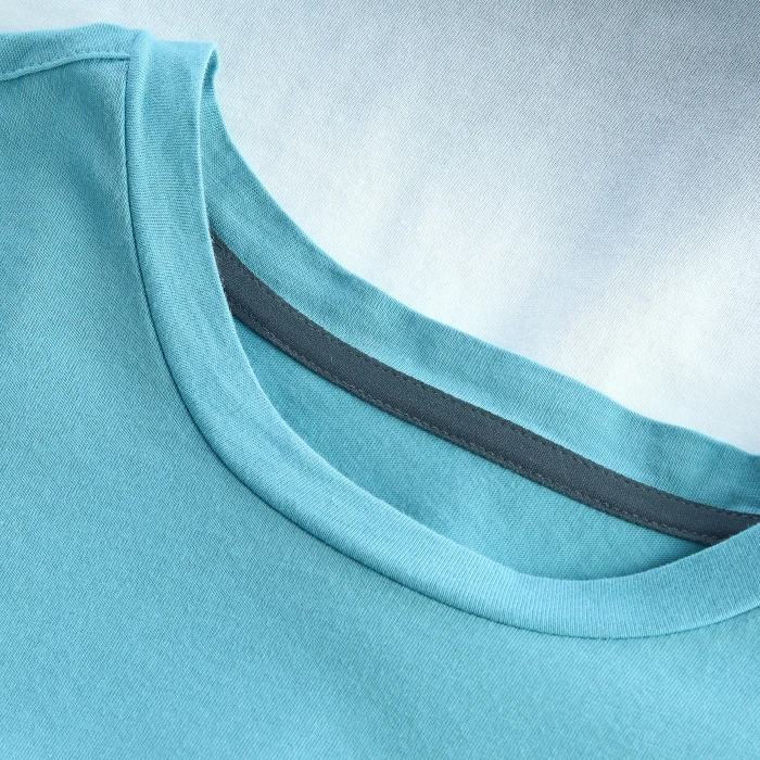 T-shirt girocollo con maniche a giro. Effetto sfumato su tutto il capo. Spalle avanzate con cucitura superiore a vista e nastro interno collo posteriore in tinta unita.